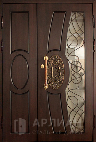 Арочная дверь для частного дома со стеклом входная №65