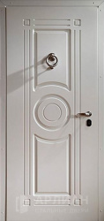 Стальная дверь белого цвета с панелью МДФ и молдингом №96