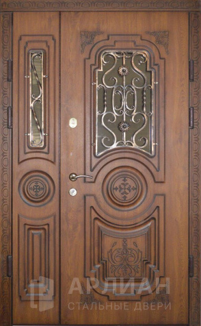 Утепленная входная дверь для коттеджа с кованными элементами №28