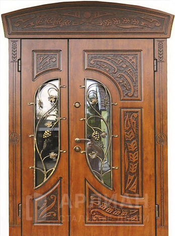 Отделка массивом парадная дверь полуторная металлическая №82