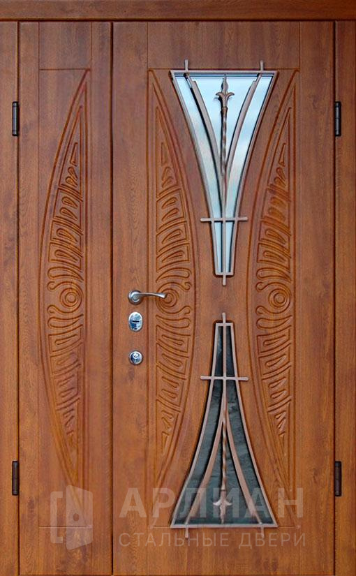 Двухстворчатая входная дверь со стеклом и ковкой №9