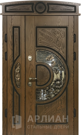 Парадная дверь с золотой патиной и фрамугой №408